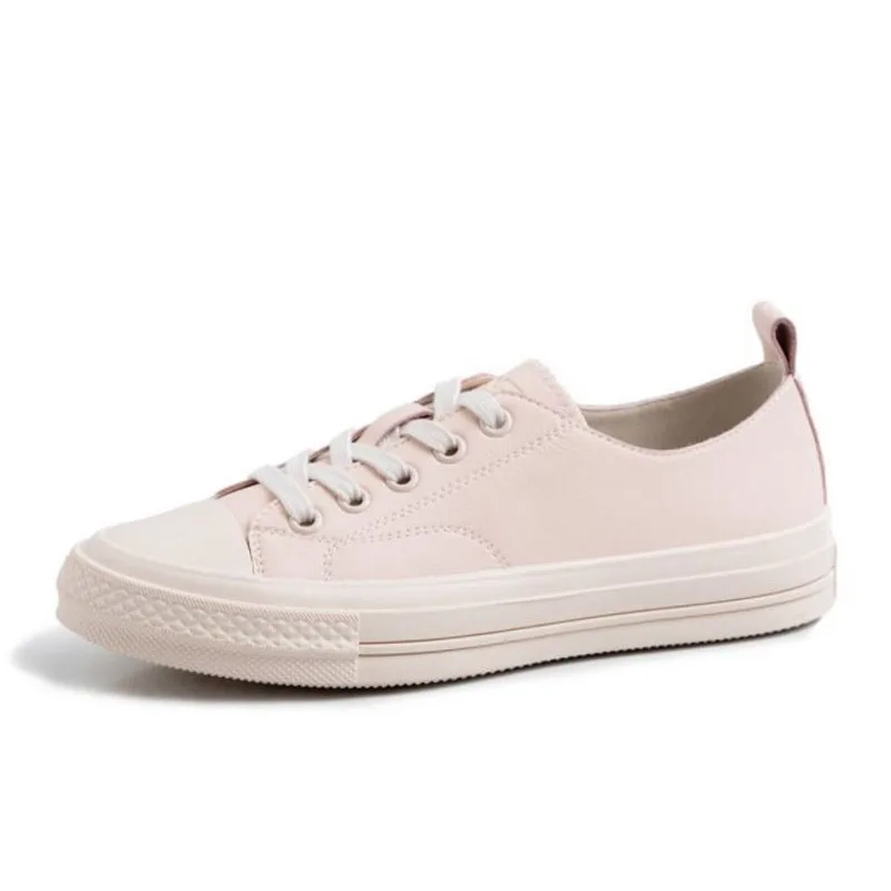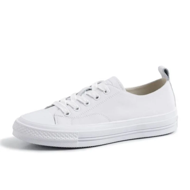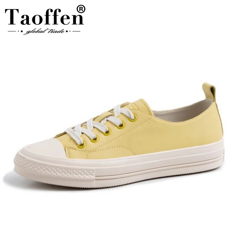 Taoffen Women Real Leather Sneakers Shoes Fashion Vulcanized Women Shoes Lace Up Round Toe Casual Women Footwear Size 35-39
